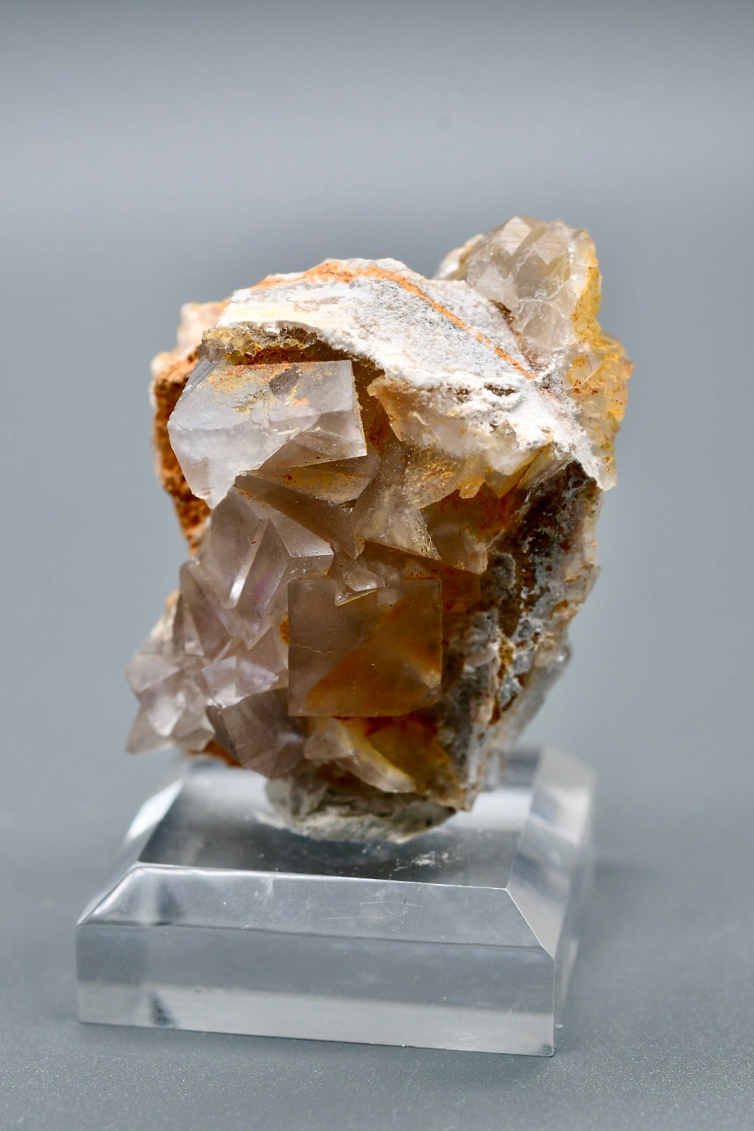 フローライト(蛍石)はCaF₂の化学式を持ち、結晶構造の美しさと多彩な色合いから「世界でもっともカラフルな鉱物」と呼ばれます。本品は研磨加工を施さず、自然のままの八面体や立方体結晶を保持。紫は夕暮れの空の余韻、グレーは氷河の静謐、ブラウンは大地のぬくもりを思わせる、詩的な色彩が結晶面に広がります。光を受けるとしっとりとした輝きを放ち、派手さよりも深い余韻を感じさせます。