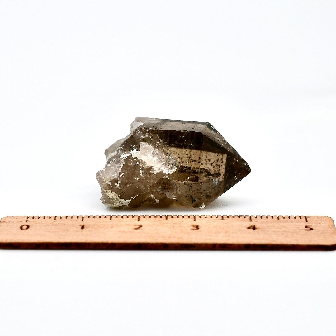 一点一点独特の自然の美しさがあり、その濃いブラウンやファントムの照りがあります。また個体によっては針状の細いブラックトルマリンが付着しています。