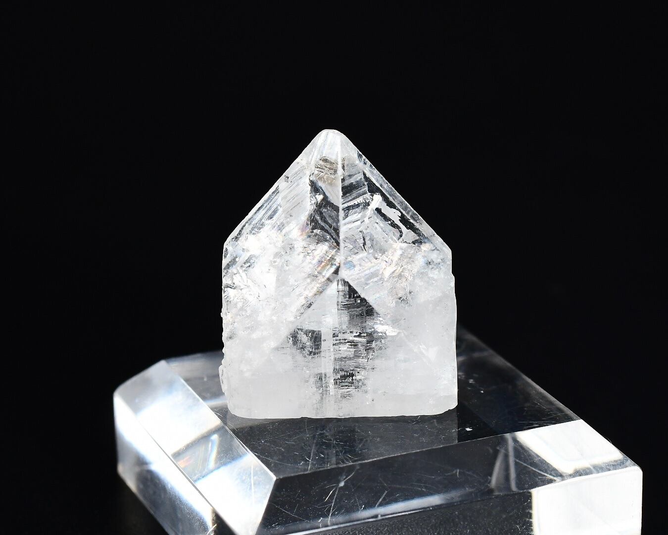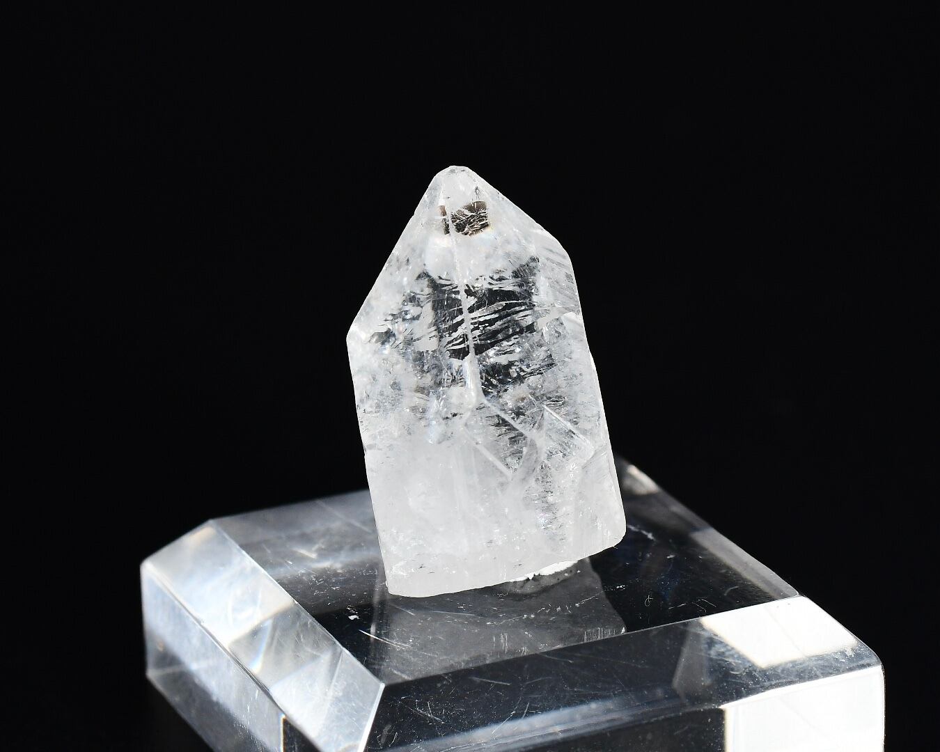 カラーレスの個体です。結晶端面が整った鉛筆の先のような氷砂糖のような可愛らしい石です。