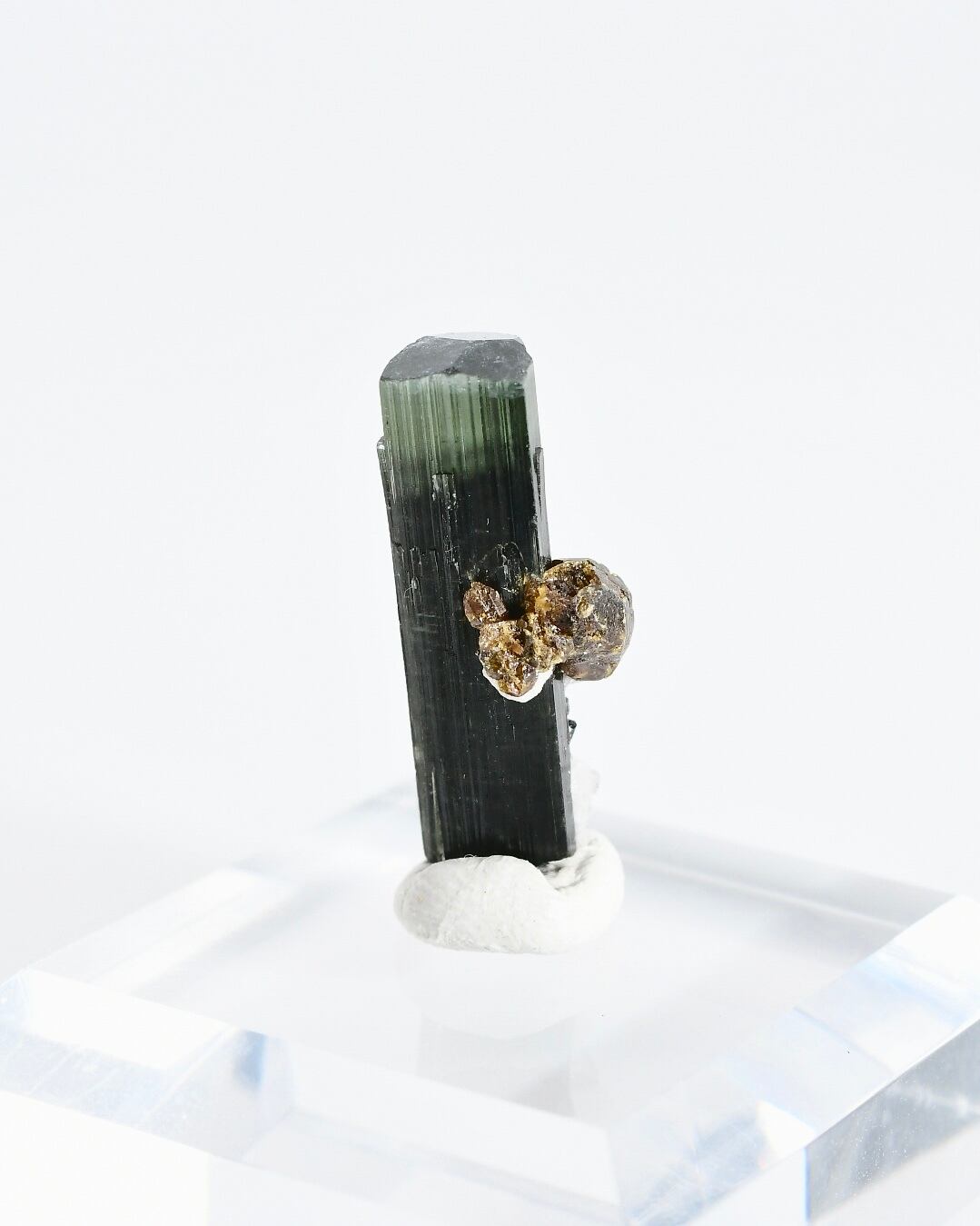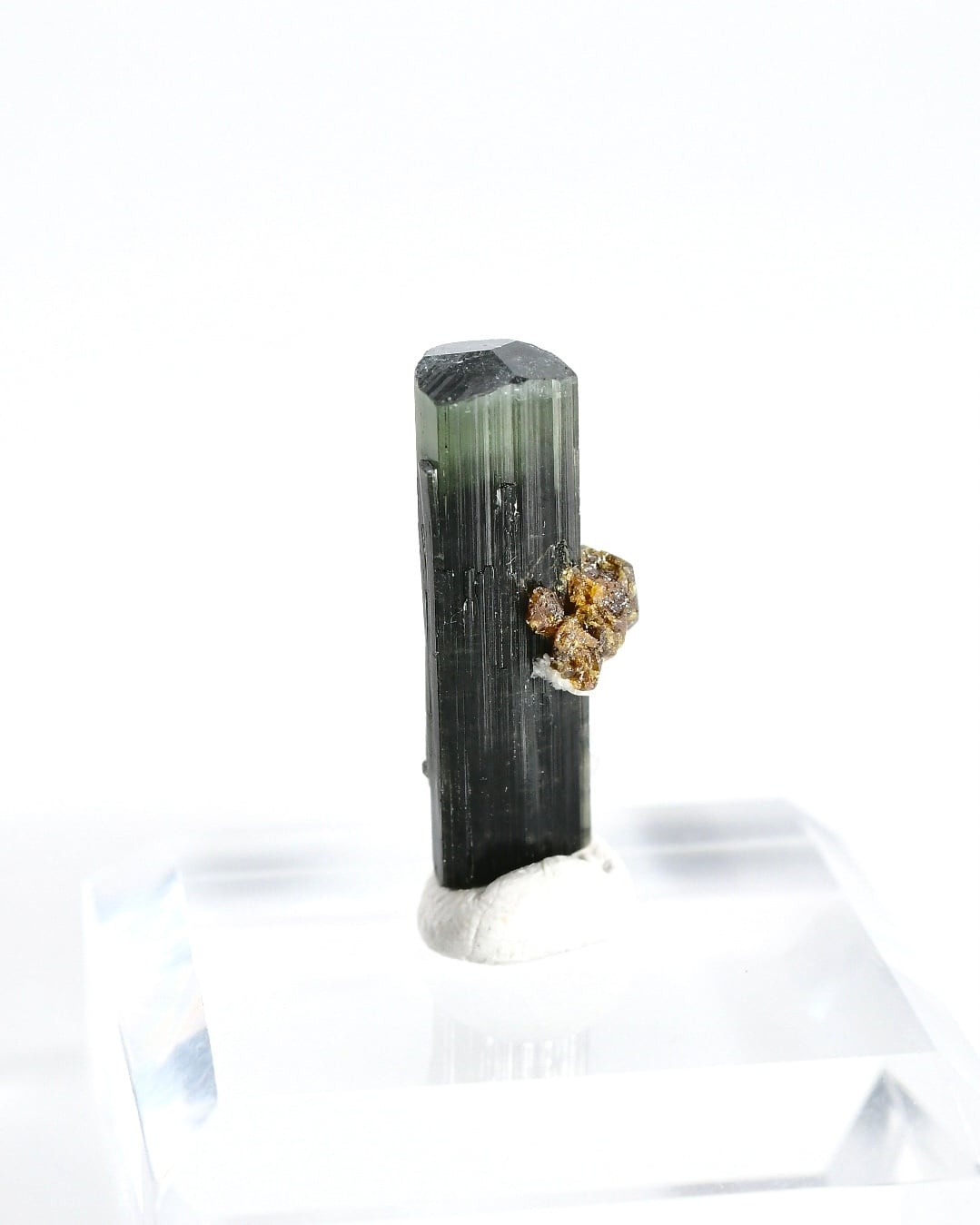 このトルマリンの黒や緑は鉄の含有によるもので、これらの鉱物は、トルマリンが地殻の中で高い圧力と温度の条件下で結晶化することで形成されます。
