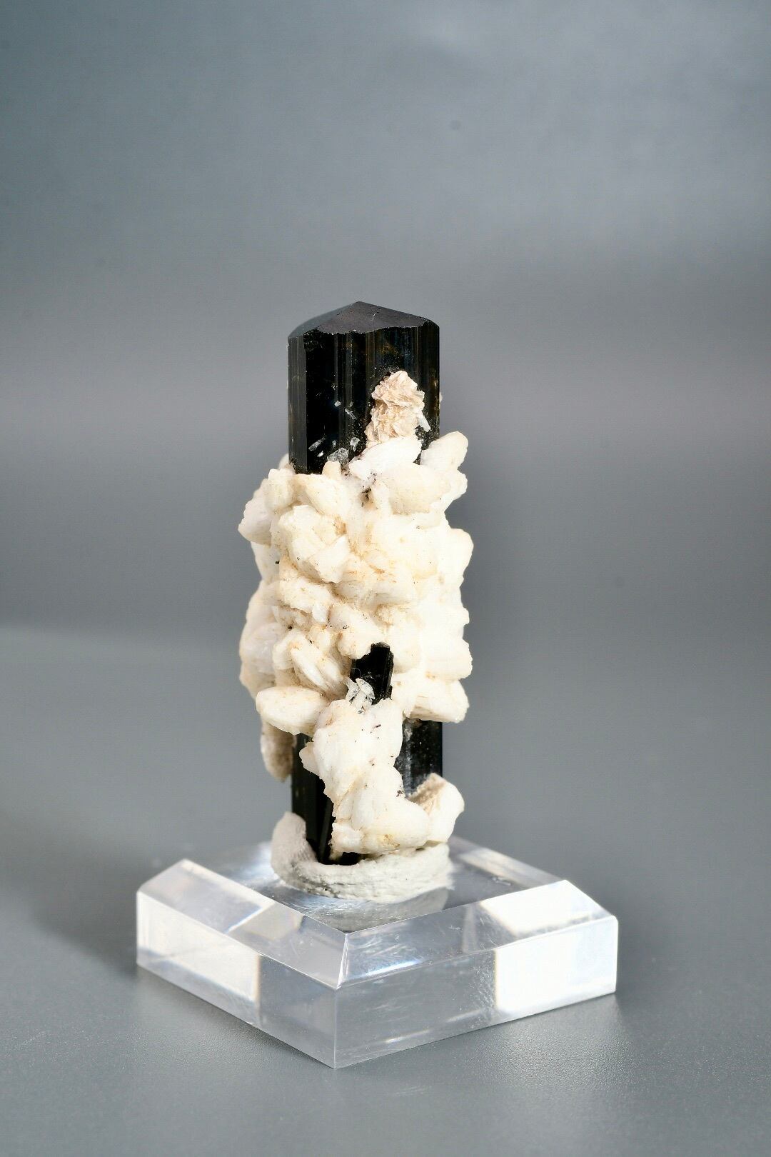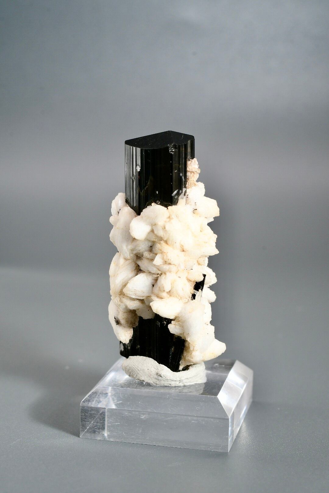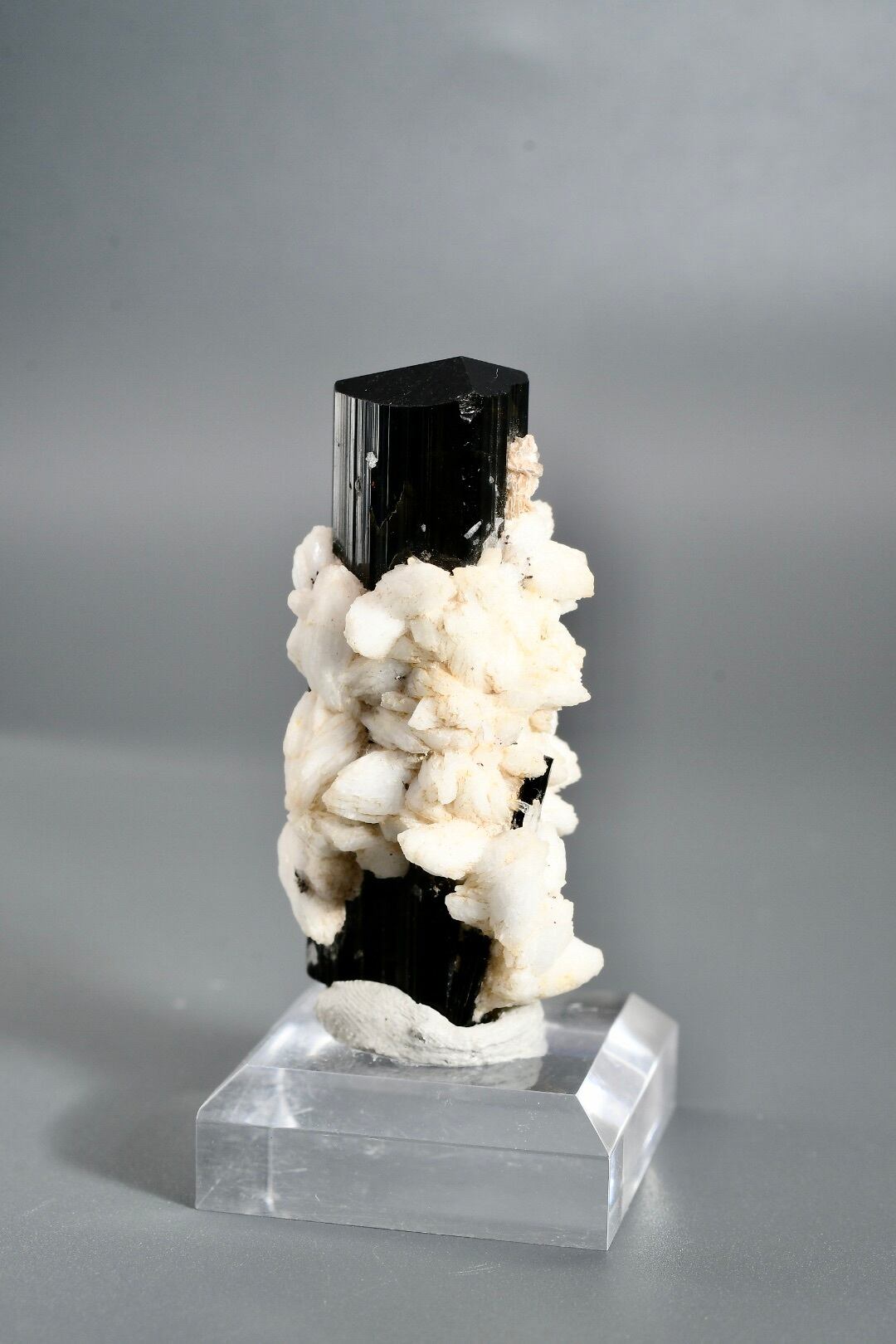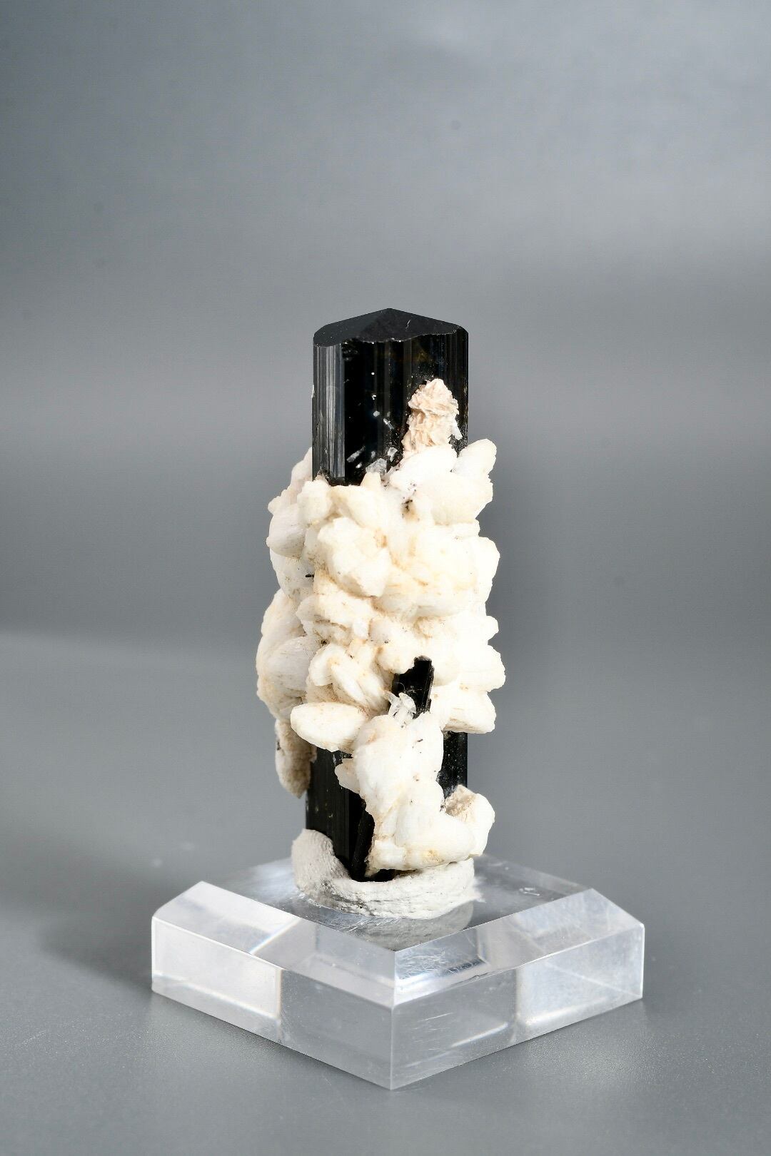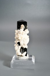 標高の高い厳しい環境で長い年月をかけて形成され、世界中のコレクターから評価される産地のひとつです。特にアルバイト(曹長石)との共生個体は珍しく、白と黒のコントラストが自然の造形美を際立たせます。