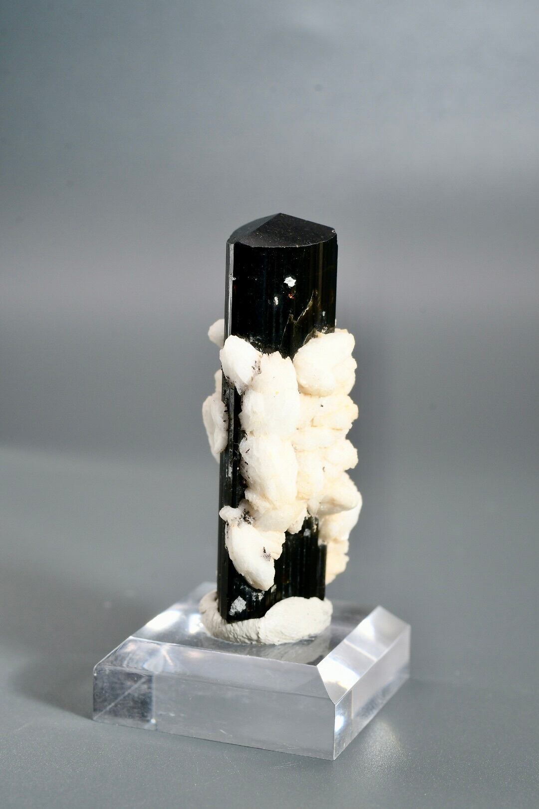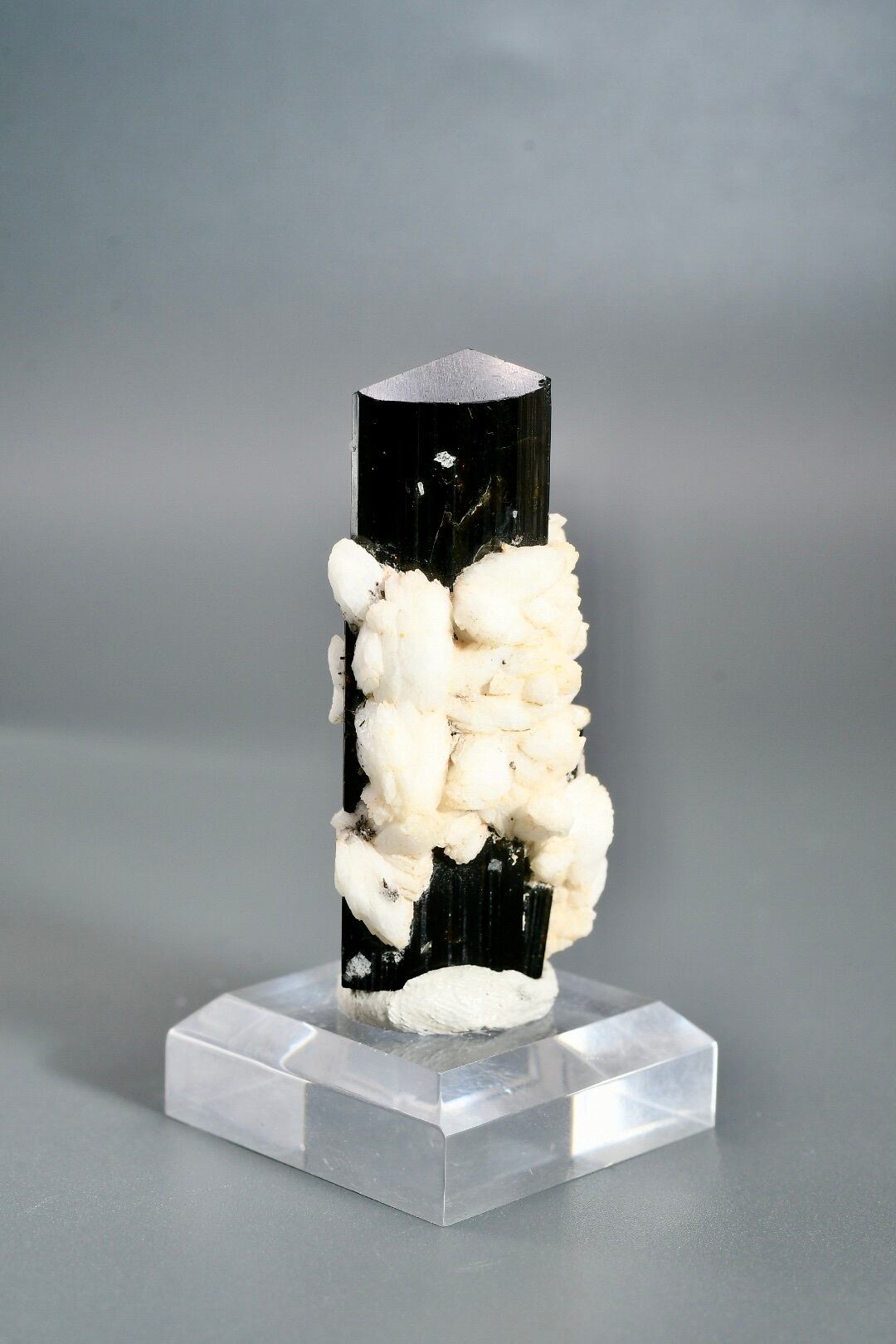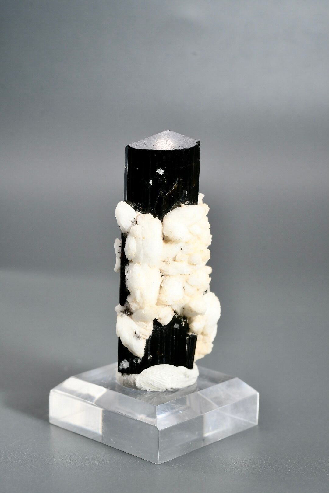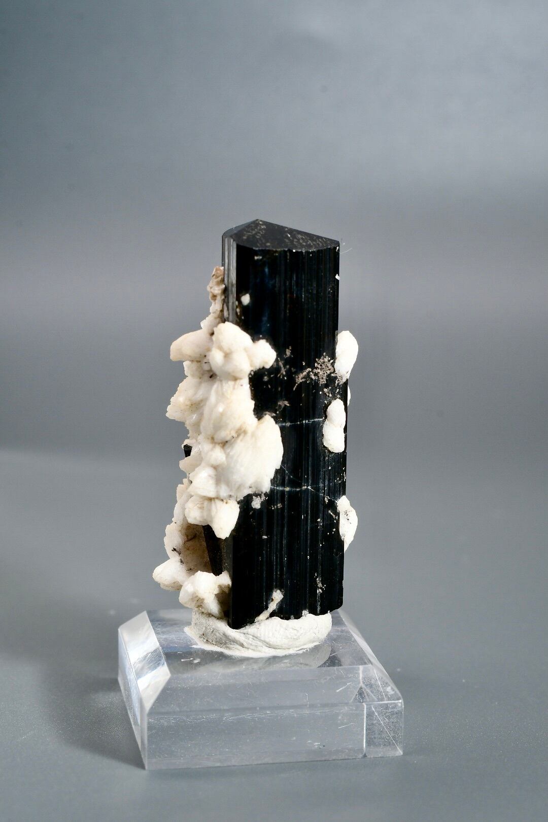 標高の高い厳しい環境で長い年月をかけて形成され、世界中のコレクターから評価される産地のひとつです。特にアルバイト(曹長石)との共生個体は珍しく、白と黒のコントラストが自然の造形美を際立たせます。