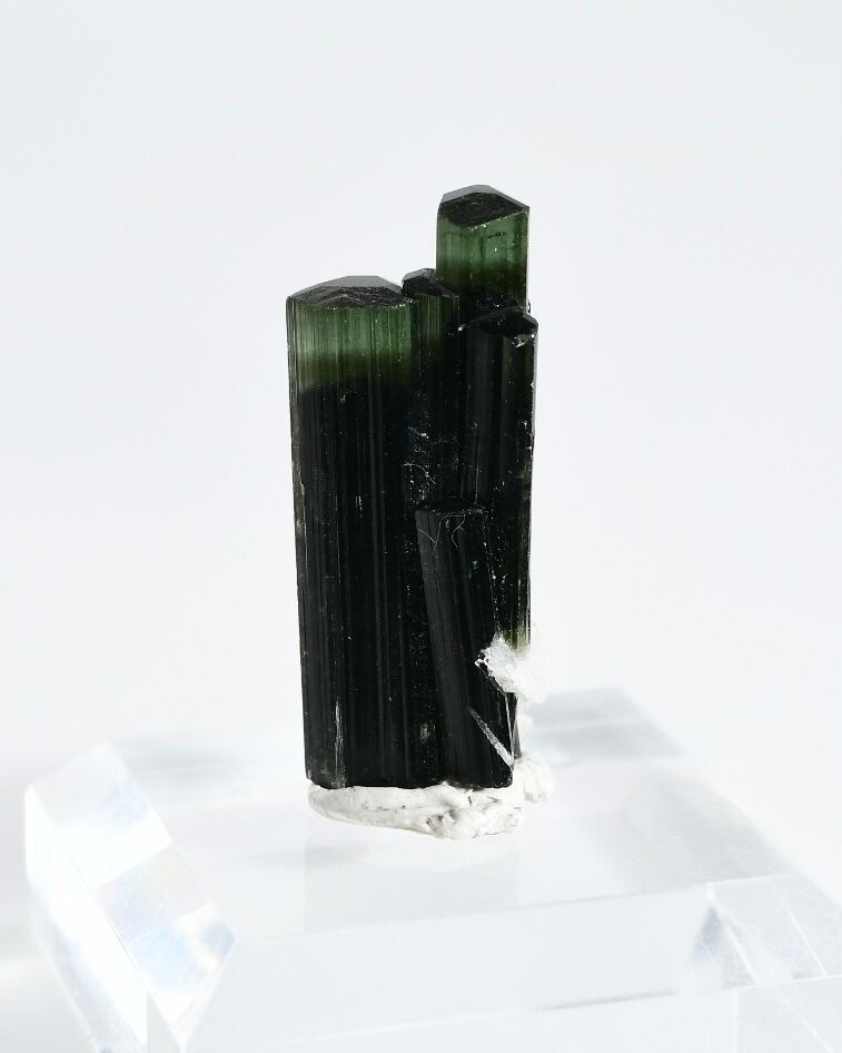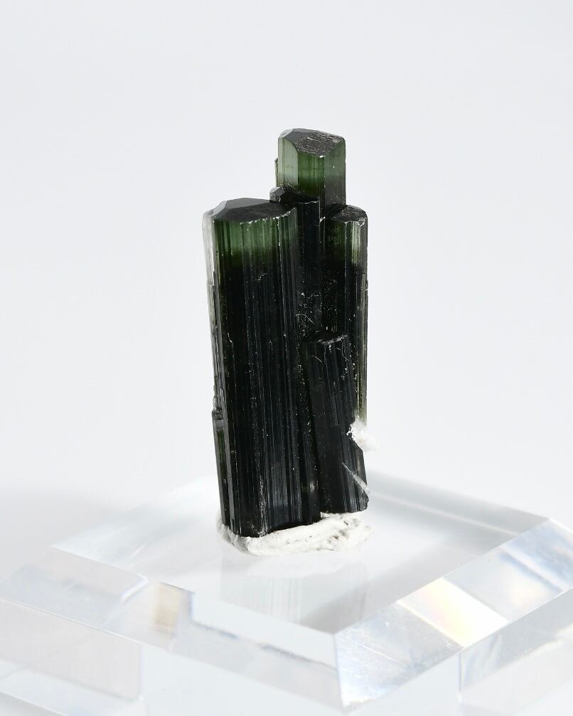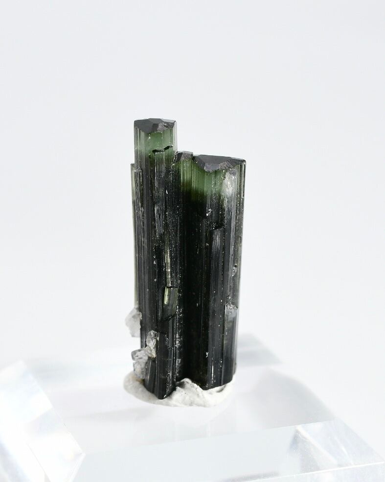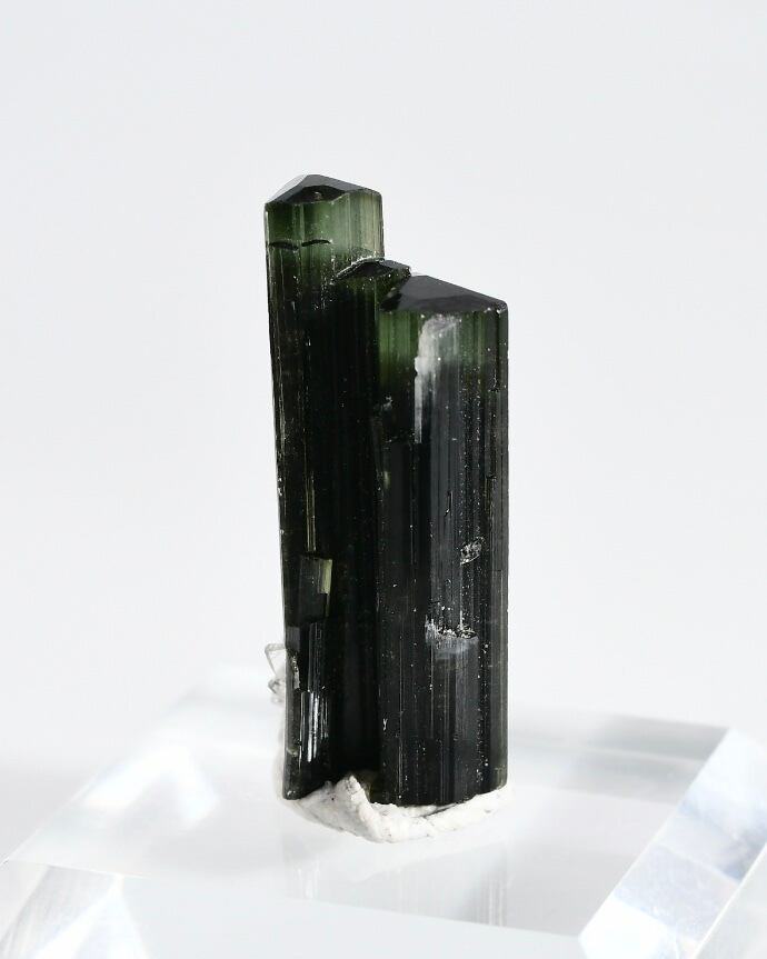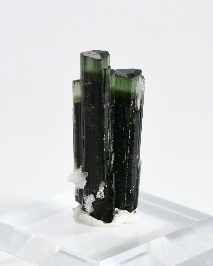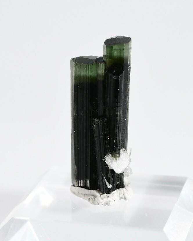 このトルマリンの黒や緑は鉄の含有によるもので、これらの鉱物は、トルマリンが地殻の中で高い圧力と温度の条件下で結晶化することで形成されます。